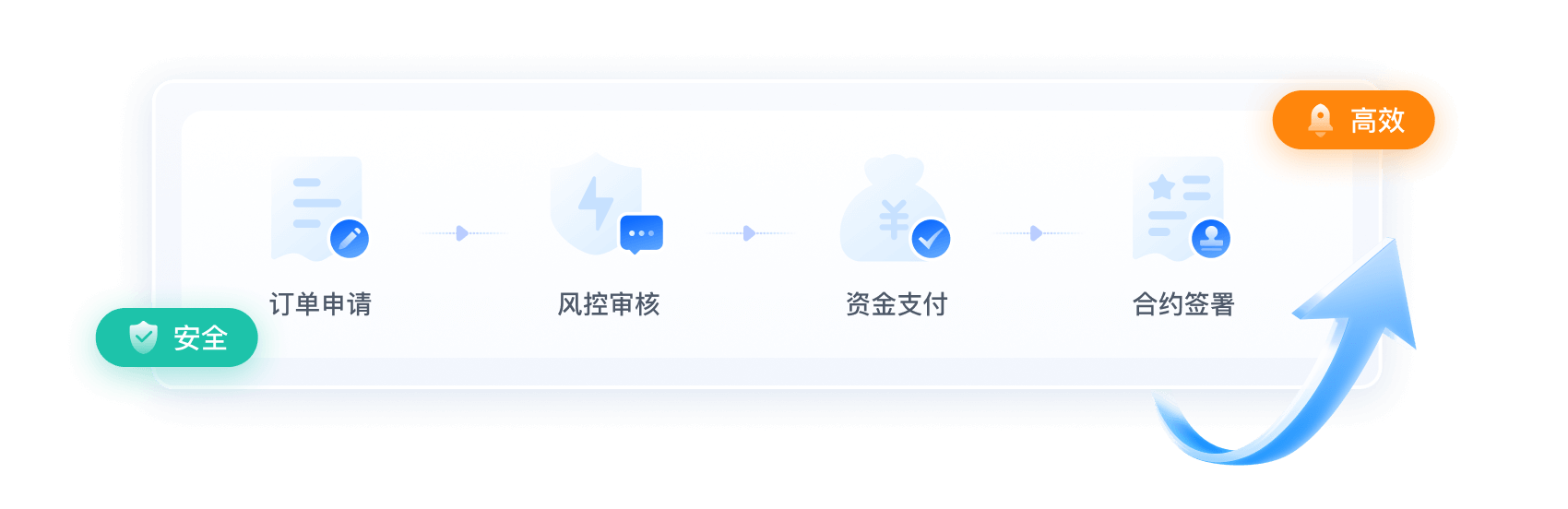 订单申请、风控审核、资金支付、合约签署均全流程线上交互,电子签章即时生效,高效、安全,大幅提升业务办理效率